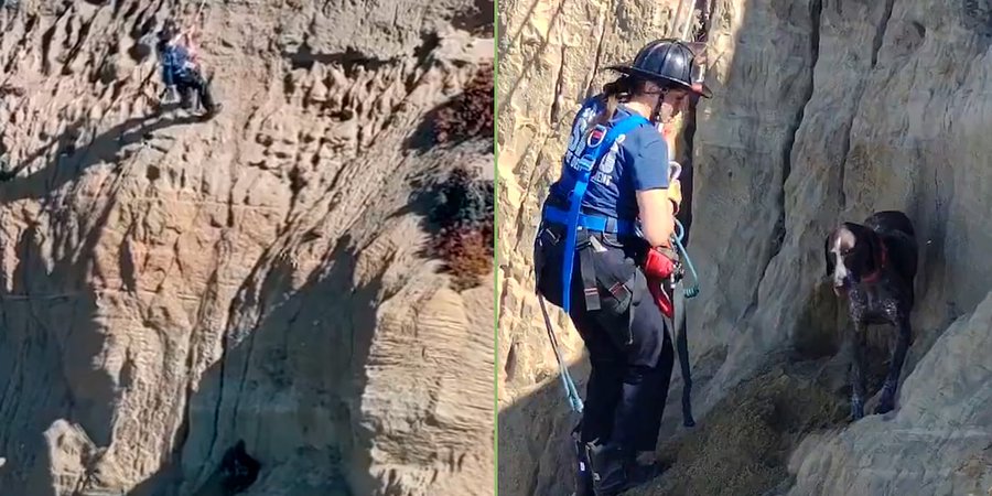 Un perro de color marrón y blanco pasó más de 20 minutos sobre una estrecha cornisa después de caer desde un acantilado en Fort Funston, un parque costero de San Francisco conocido por sus empinadas pendientes que llegan a los 61 metros de altura. El animal jugaba con otro can el martes, en una zona desconocida para él, cuando resbaló y perdió el equilibrio al pisar vegetación, provocando su caída, según explicó el capitán de rescate Samuel Menchaca, del Departamento de Bomberos de San Francisco.